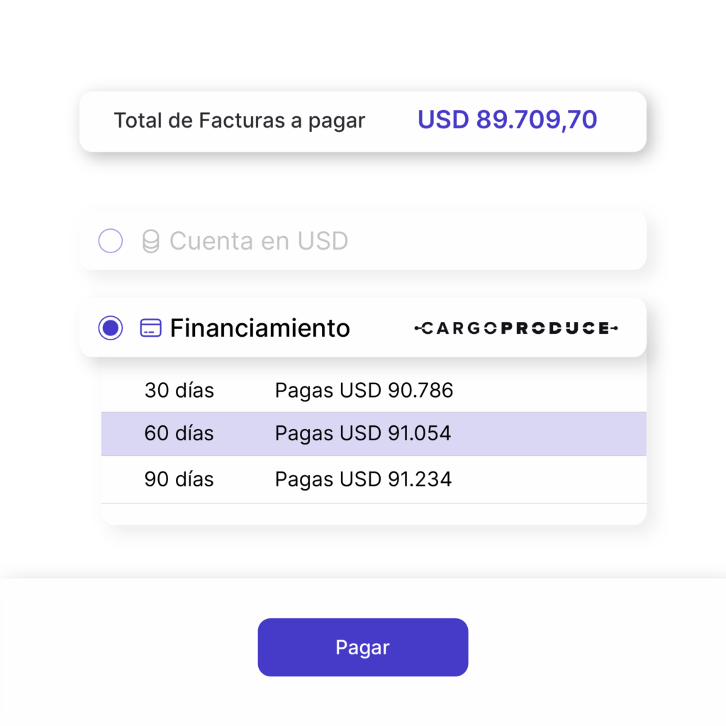 Accede a lineas de credito competitivas, exclusivas para pago a proveedores.