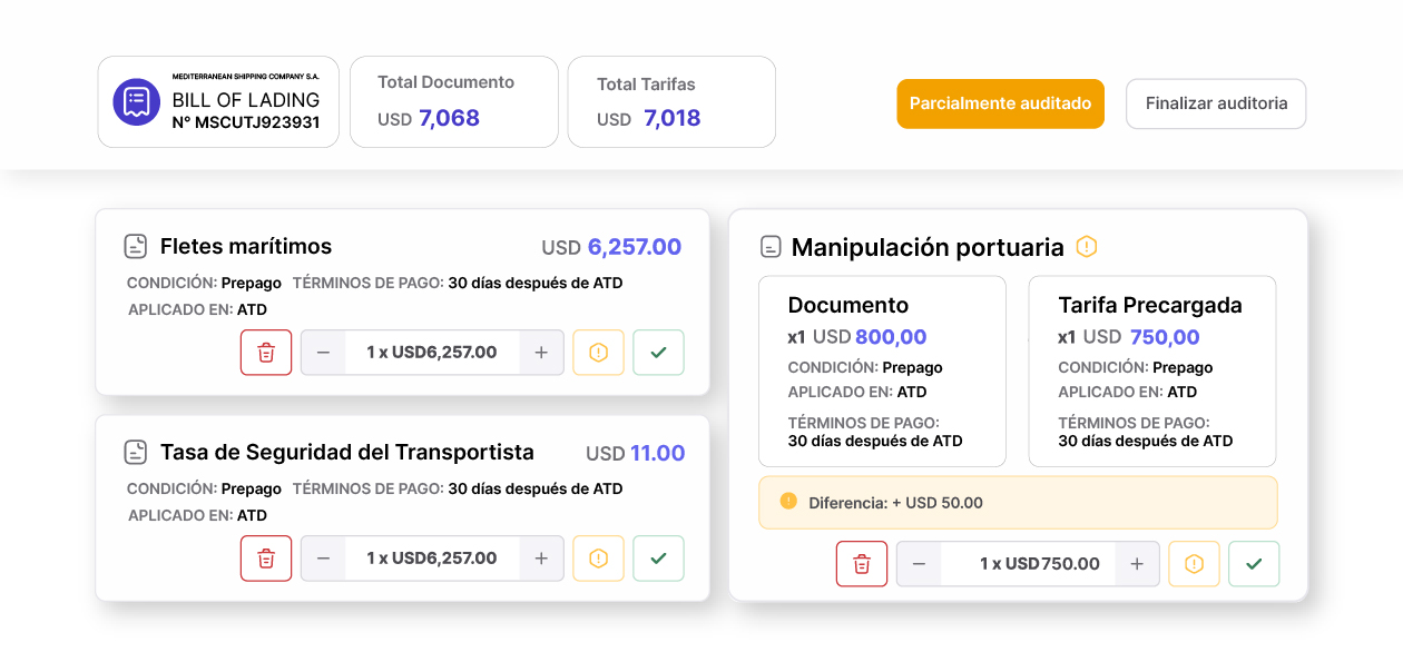 Aprobamos los cobros correctos y objetamos los costos erróneos, comunicando los errores a tus proveedores para su ajuste.