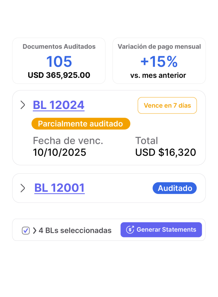 Audit without errors, effectively controlling your costs, generate statements, and pay one or more suppliers with a single click.